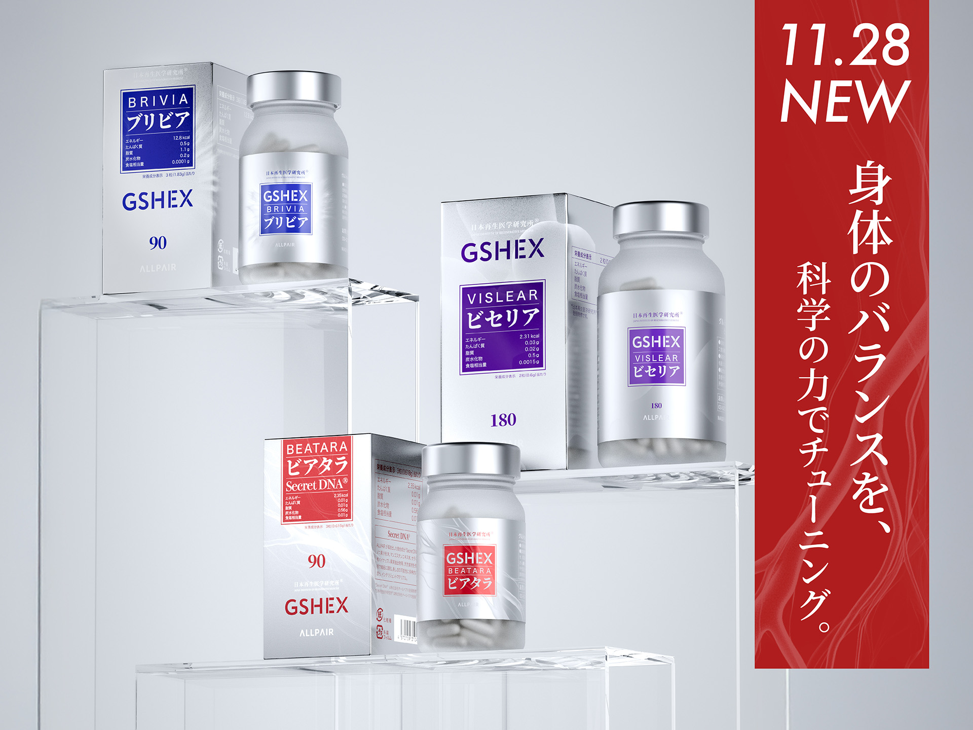 GSEHXは、「身体のバランスを、科学でチューニング。」をコンセプトに再構築された、次世代ヘルスサイエンスブランドです。